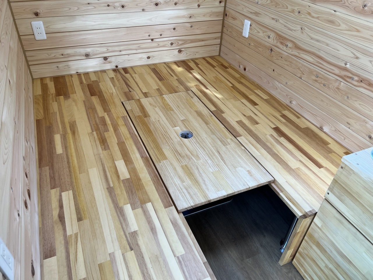 マッサージベッドの下にはサブバッテリーシステムを設置しました。
