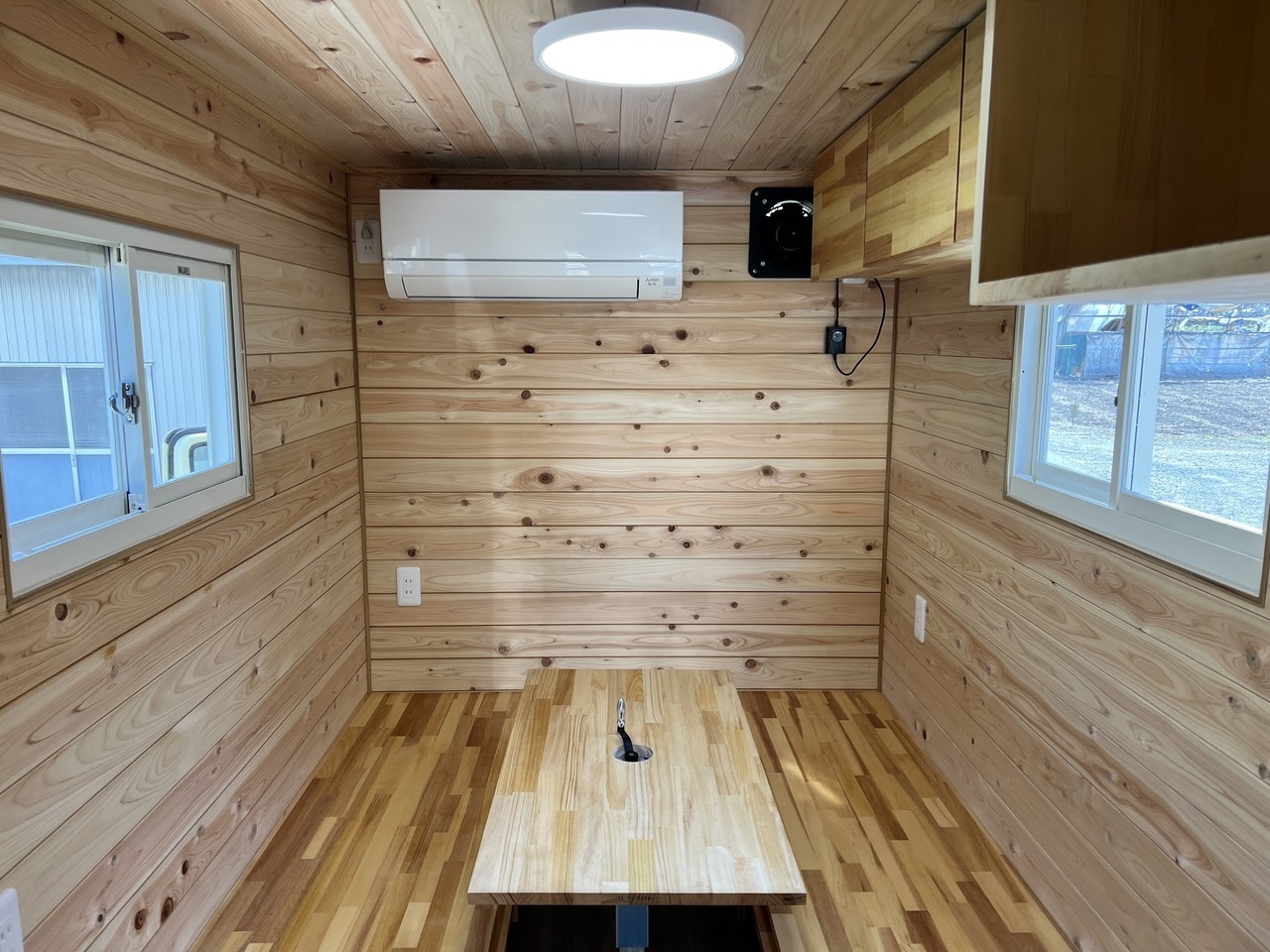 開口周りも天井と同一の羽目板で、統一感もばっちり